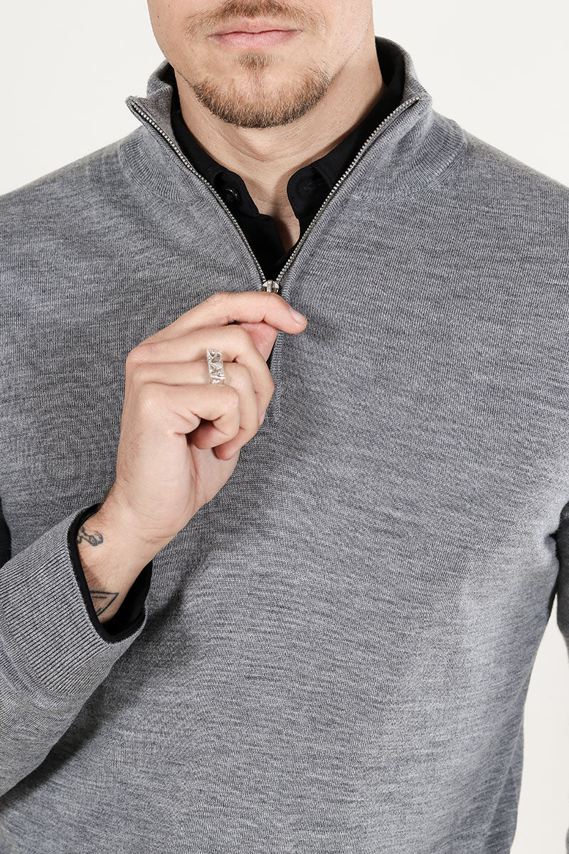 Tray LS Merino Knit Half Zip Medium Grey Melange