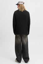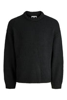 - The sweater has a crewneck, long sleeves, and a chunky texture. Additionally, it features ribbed cuffs and hem.