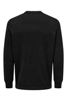 - The sweater features a crew neck with ribbed trim, and ribbed cuffs