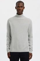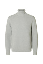Selected Dane LS Structure Knit Roll Neck Light Grey Melange