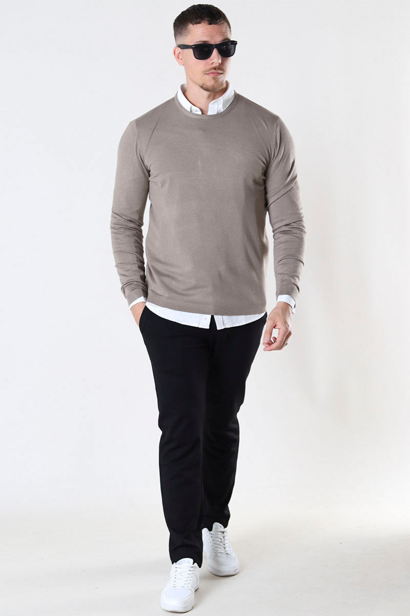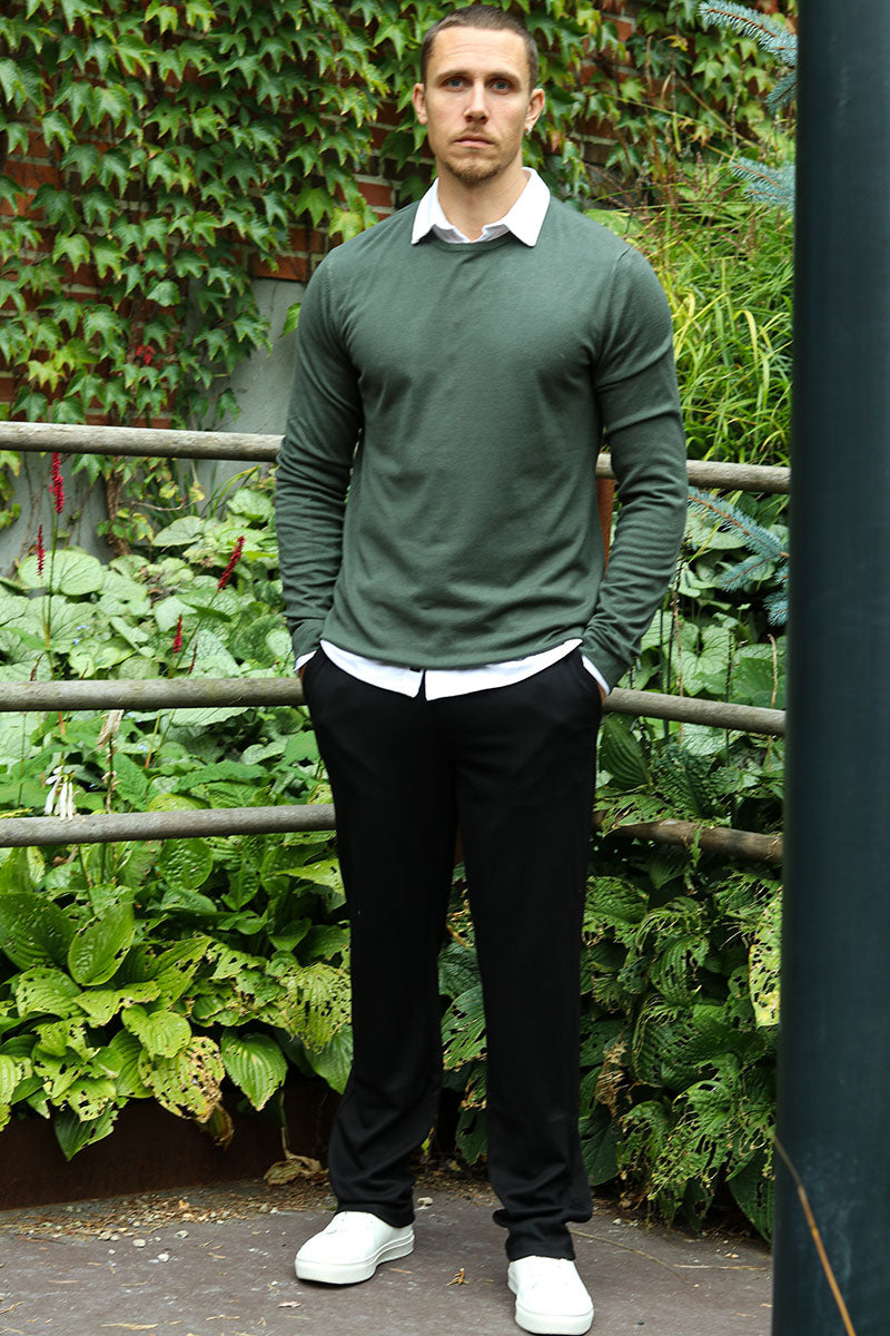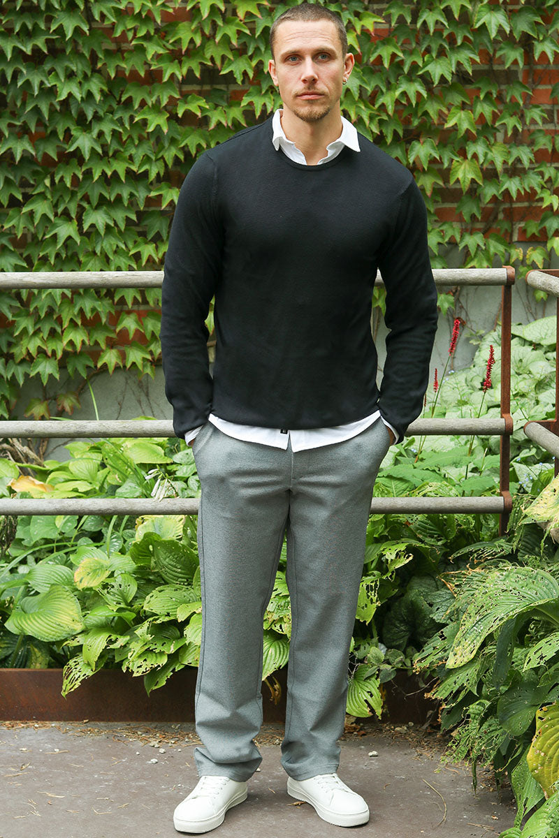 A knit pullover is highly versatile and can be used year-round. It's not too thick for a summer evening, and at the same time, it can easily serve as the top layer in winter when you need more warmth. A pullover can be super practical over a t-shirt, which, paired with a pair of jeans, gives it a very casual look. It can also be part of a more formal outfit with a shirt underneath—this is where the sweater truly shines with the shirt's collar and sleeves adding an edge to the outfit. Paired with a pair of chinos and loafers, the style becomes complete and can be worn for a business meeting or a family gathering. You can still maintain the casual look with a shirt underneath by, for example, adding a leather jacket and a pair of distressed jeans.
