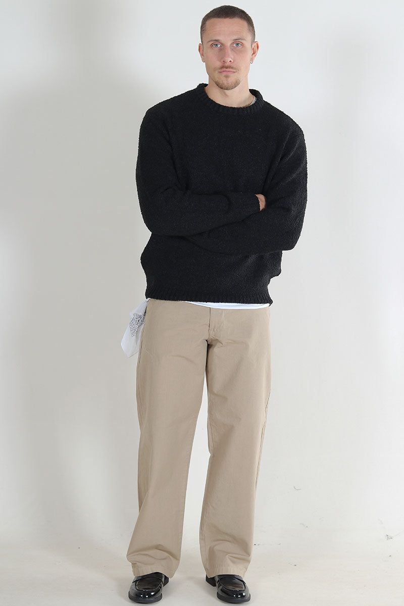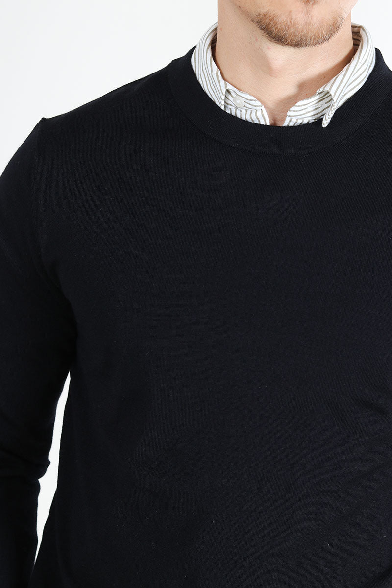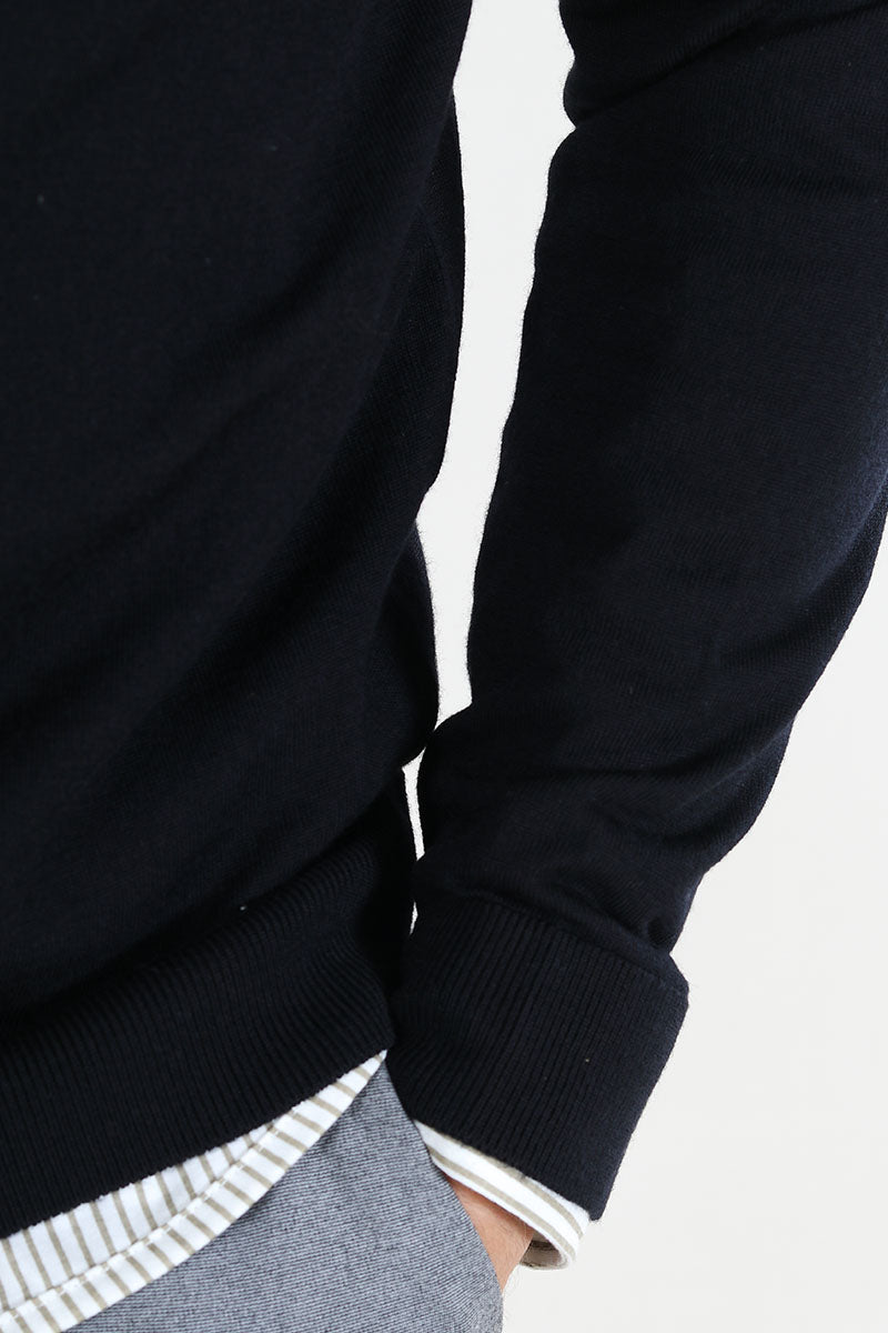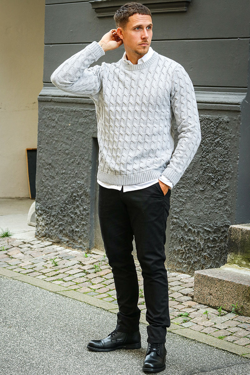 A knit pullover is highly versatile and can be used year-round. It's not too thick for a summer evening, and at the same time, it can easily serve as the top layer in winter when you need more warmth. A pullover can be super practical over a t-shirt, which, paired with a pair of jeans, gives it a very casual look. It can also be part of a more formal outfit with a shirt underneath—this is where the sweater truly shines with the shirt's collar and sleeves adding an edge to the outfit. Paired with a pair of chinos and loafers, the style becomes complete and can be worn for a business meeting or a family gathering. You can still maintain the casual look with a shirt underneath by, for example, adding a leather jacket and a pair of distressed jeans.