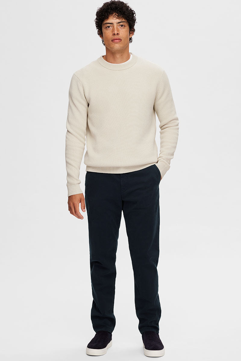 The first, and perhaps the most important knit sweater to mention is the simple, classic pullover sweater with a round neck and long sleeves, which never really goes out of style. It comes in many different colors and shades and is also designed in patterned models, giving it a slightly different expression. At 2trendy, you'll find a wide range of pullovers from well-known brands like Selected, Clean Cut, Jack and Jones, and Kronstadt.
