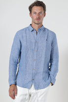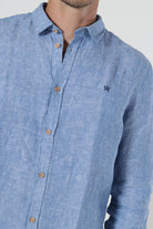 • Light blue long-sleeved linen shirt in a regular fit.