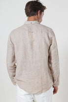 • Beige long-sleeved linen shirt in a regular fit.