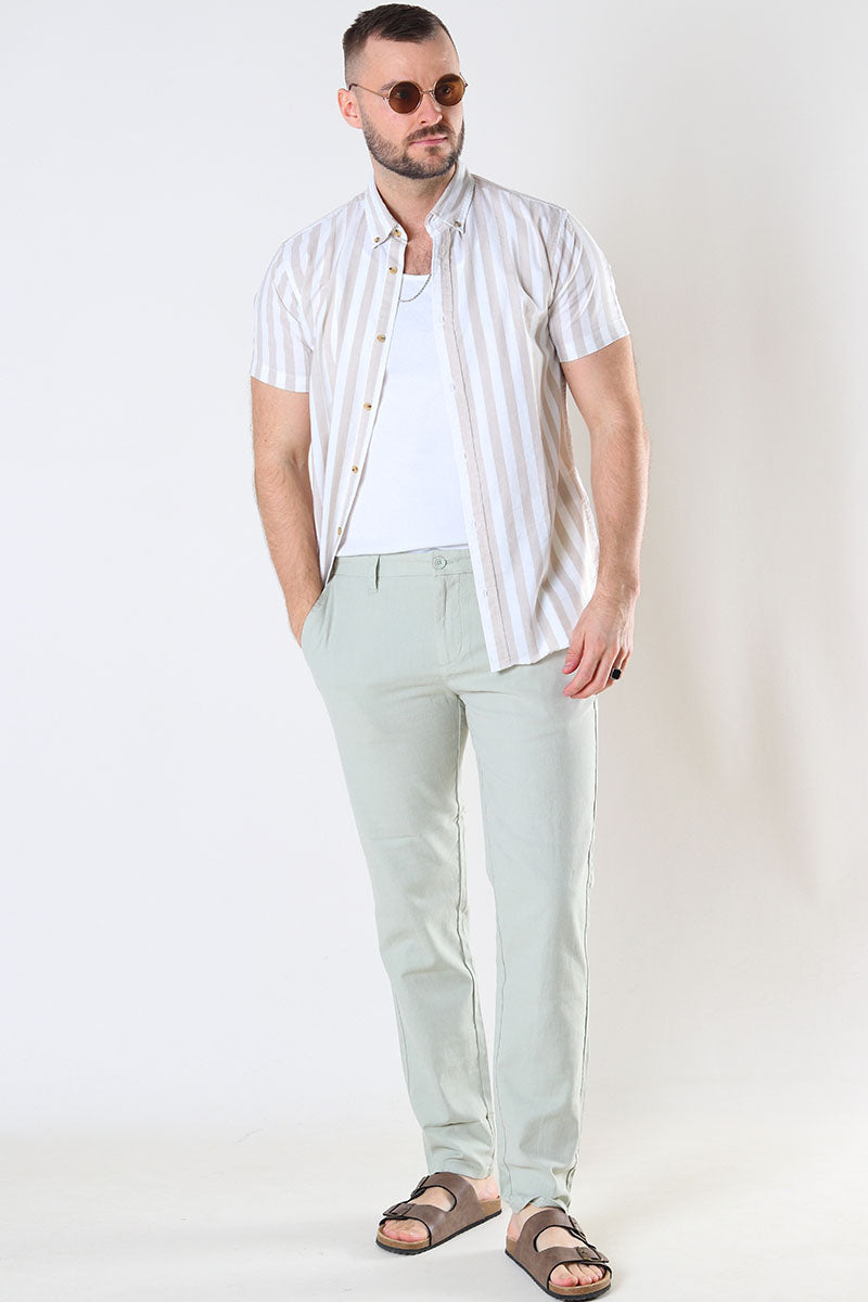 ONLY & SONS Mark Cotton Linen Pants Grey Pinstripe