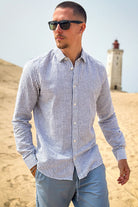 Caiden LS Stripe Linen Shirt Dark Navy