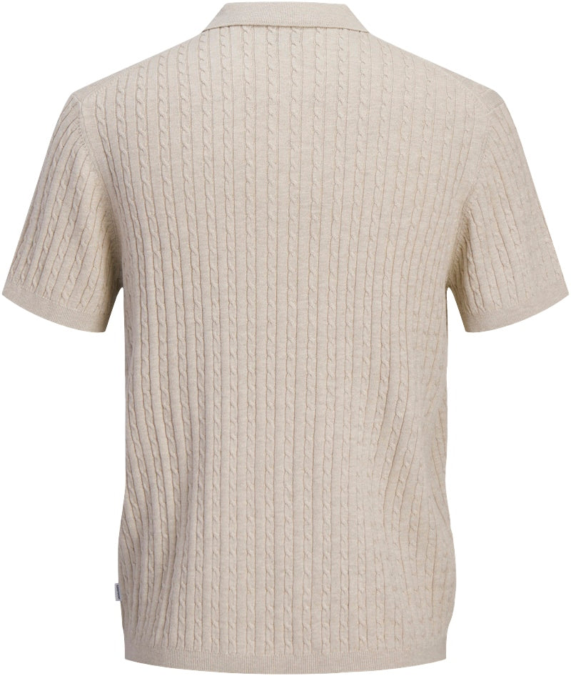Emil Knit Cable Polo SS Oatmeal