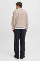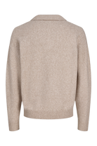 This pullover features a relaxed fit and combines comfort with a timeless, casual style. It is knitted in a flat knit structure that provides both flexibility and a comfortable feel. With its split neck and long, tailored sleeves, it's ideal for the autumn season. The light grey colour gives the pullover a neutral, versatile look that’s easy to style with different outfits