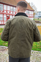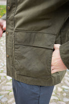 This waxed jacket features a classic spread collar and long sleeves, offering a timeless look suitable for winter wear. Crafted entirely from cotton, it provides a comfortable and durable option for everyday outerwear. The muted canteen color adds a subtle, versatile touch that pairs well with various styles.