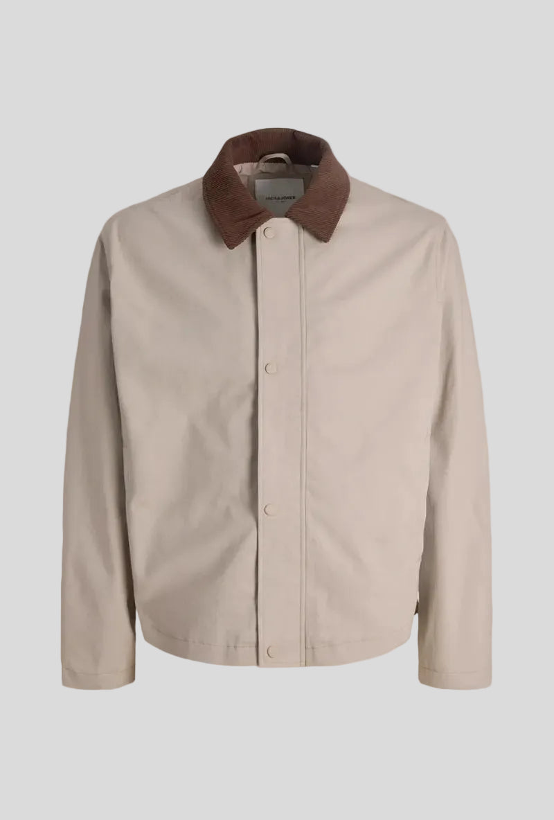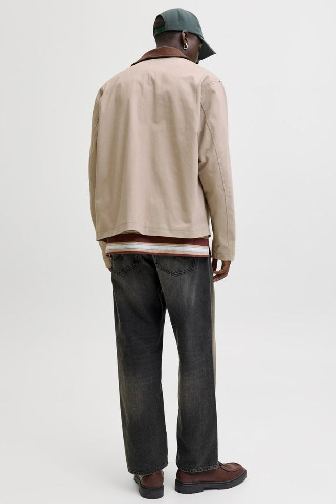 This worker jacket is made from a sturdy woven fabric that is durable and does not stretch like knitted materials. The jacket features a classic workwear style with a spread collar and long sleeves, making it ideal for a rugged look.