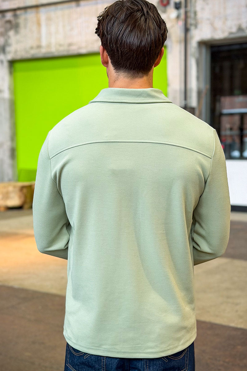 This overshirt combines comfort and style with a relaxed fit and long sleeves, making it a versatile addition to any wardrobe. The soft fabric blend includes recycled polyester, viscose, and elastane, ensuring both durability and ease of movement. Featuring a classic shirt collar and button fastening, it also has chest pockets with button closures for practical storage. Its earthy green tone adds a natural touch that pairs well with various outfits, perfect for everyday wear, work, or special occasions.