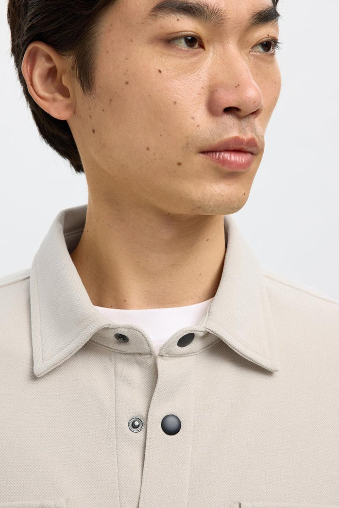 This sweatshirt offers a casual and comfortable fit, featuring long sleeves and a shirt collar that adds a refined touch. The soft blend of organic cotton and recycled polyester provides both comfort and sustainability, making it a great choice for everyday wear. Practical chest pockets enhance its functionality without compromising style.