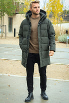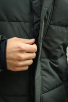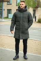 This quilted coat offers warmth and style for the colder months, designed to keep you comfortable whether you're exploring the city or heading from one place to another. It features a detachable hood and ribbed cuffs for added protection against the cold, while a zip fastening ensures easy closure. The jacket is padded with premium synthetic filling and lined with polyester, providing a cozy feel throughout the day. Its dark grey color with quilted detailing adds a modern, casual touch to your outerwear collection.