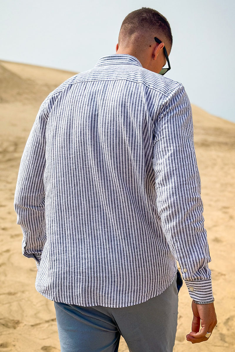 ONLY & SONS Caiden LS Stripe Linen Shirt Dark Navy