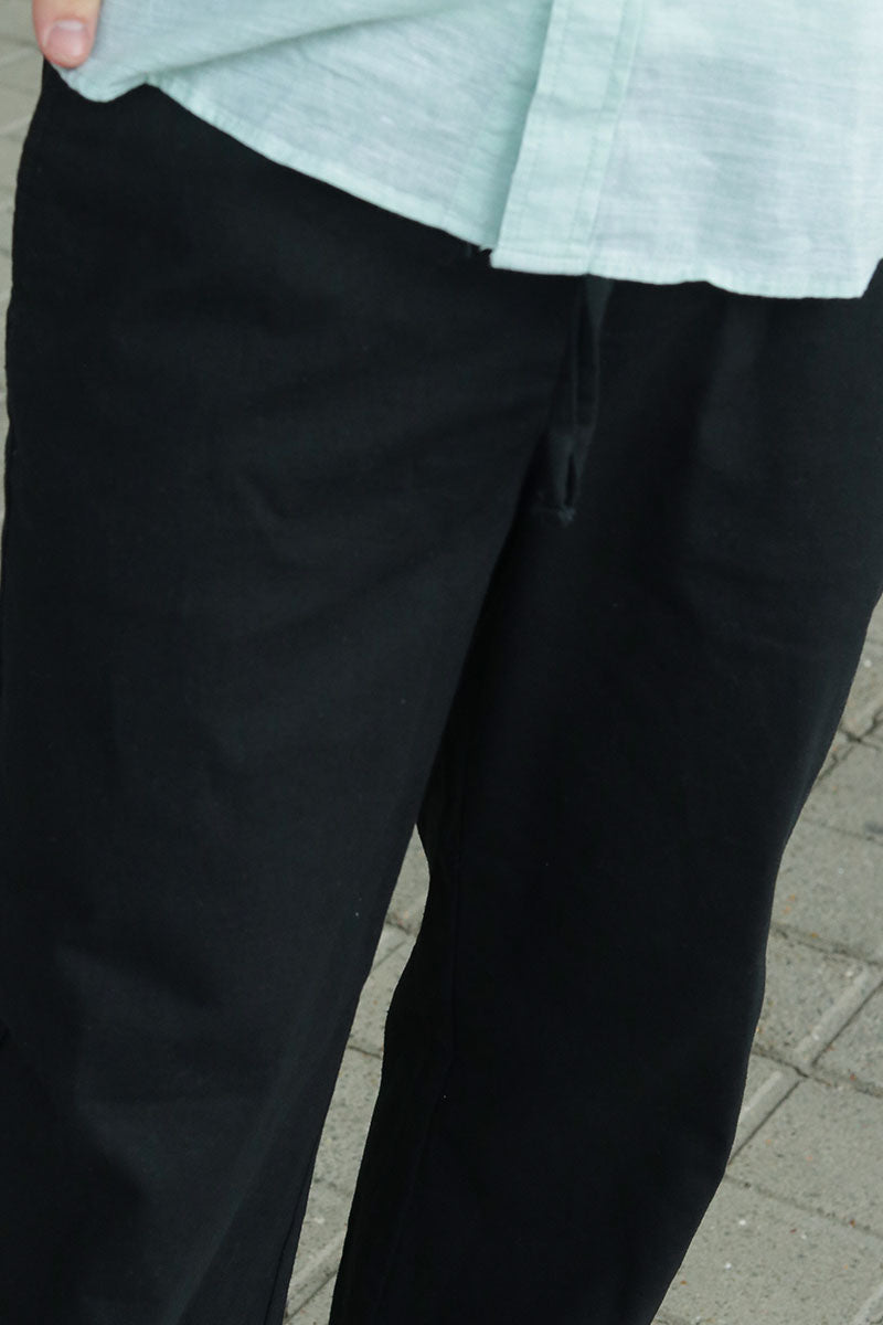 Sinus Loose Cotton Linen Pants Black