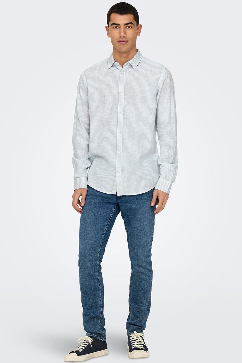 ONLY & SONS Caiden LS Stripe Linen Shirt Cashmere Blue