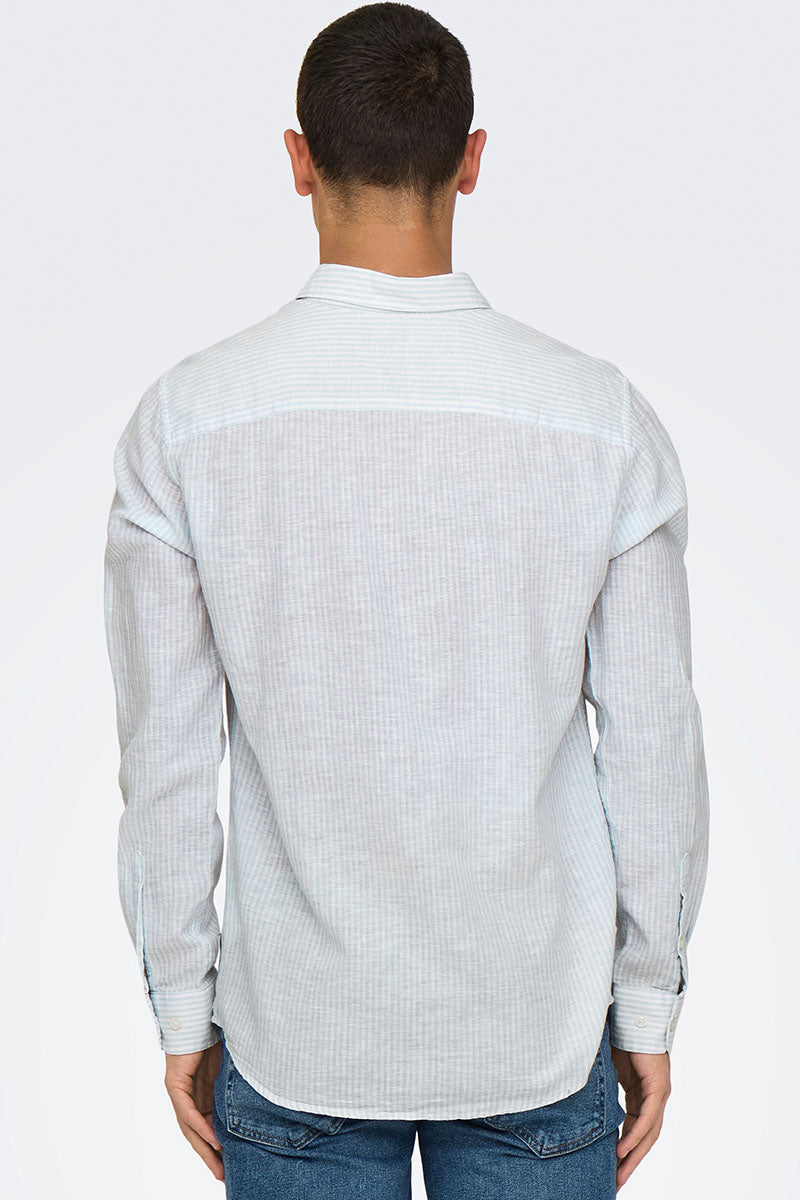 ONLY & SONS Caiden LS Stripe Linen Shirt Sea Spray