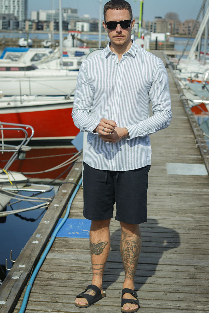 ONLY & SONS Caiden LS Stripe Linen Shirt Dark Navy