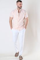 ONLY & SONS Mark Cotton Linen Pants Grey Pinstripe