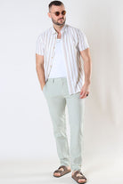 ONLY & SONS Mark Cotton Linen Pants Grey Pinstripe