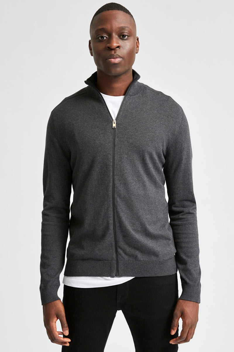 Selected BERG FULL ZIP CARDIGAN Antracit Melange