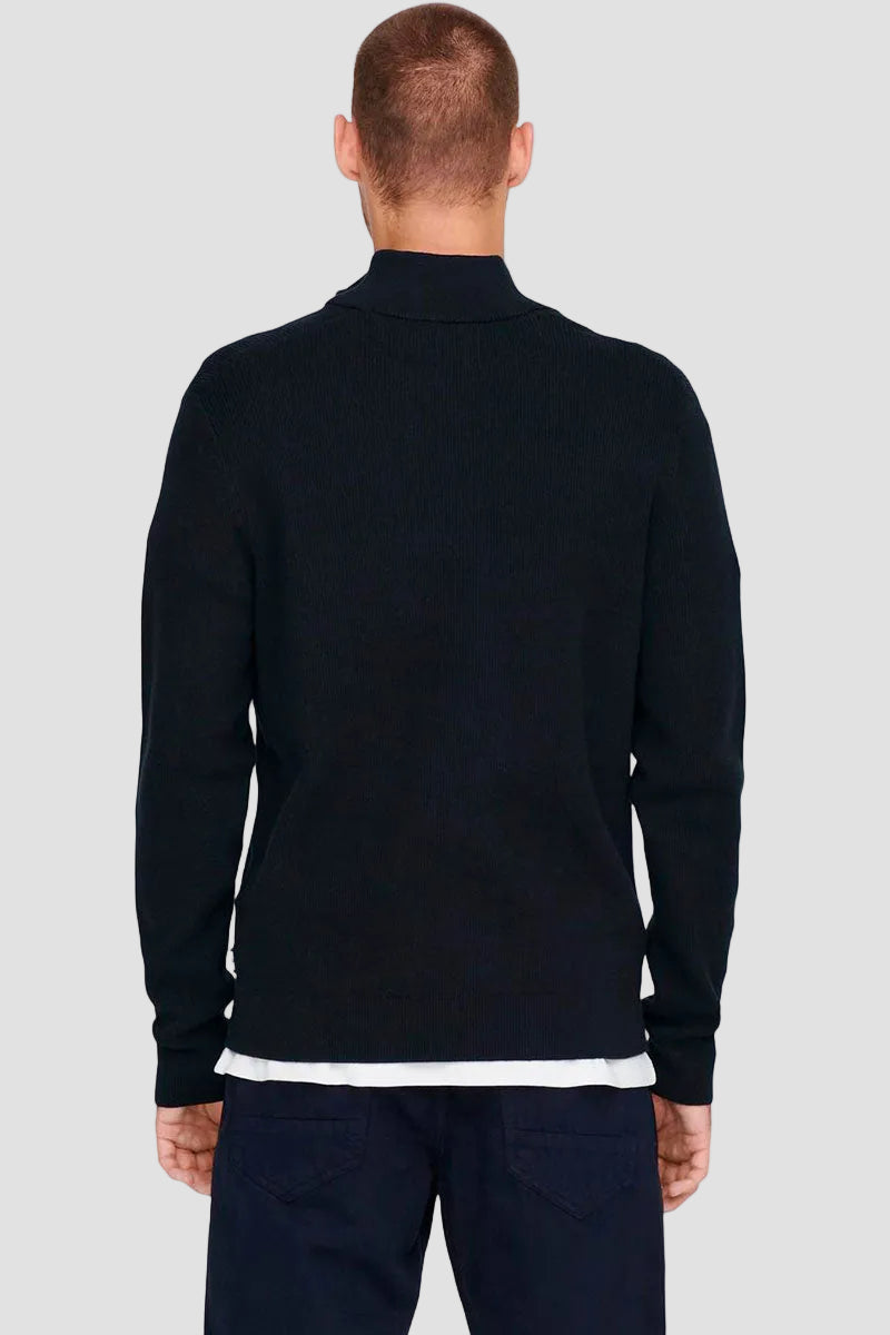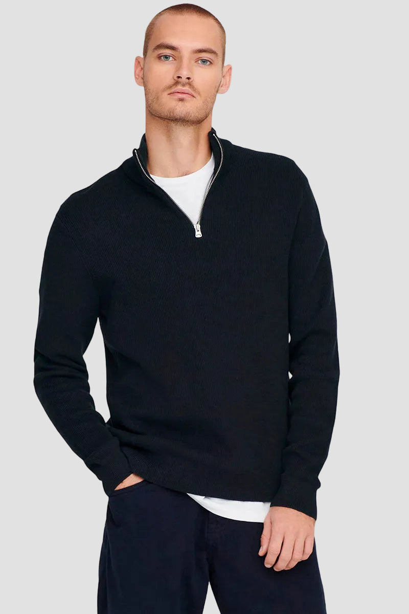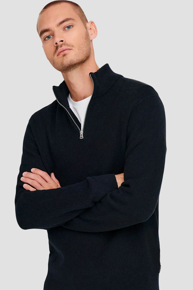ONLY & SONS PHIL COTTON HALF ZIP KNIT Black