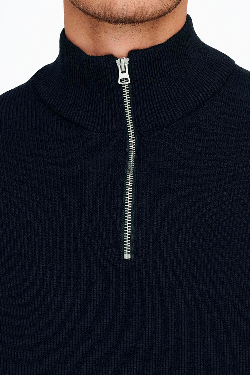 ONLY & SONS PHIL COTTON HALF ZIP KNIT Dark Navy