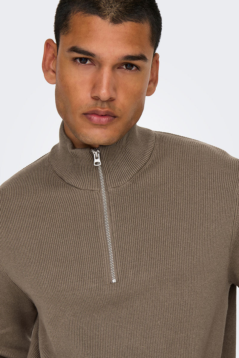 ONLY & SONS Phil Cotton Half Zip Knit Desert Taupe