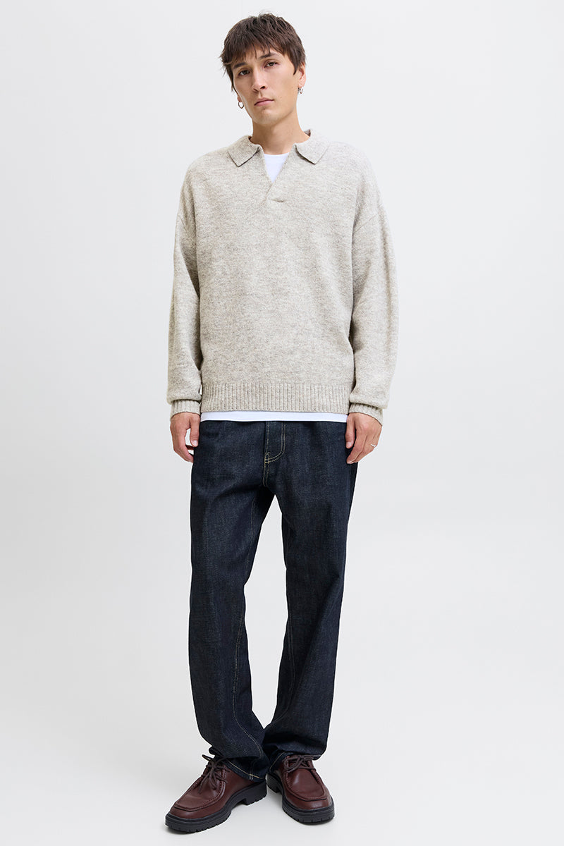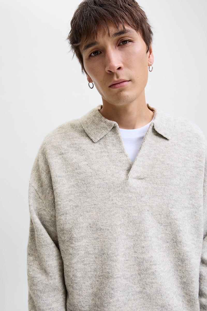 Soho Ollie Knit Split Neck Light Grey Melange