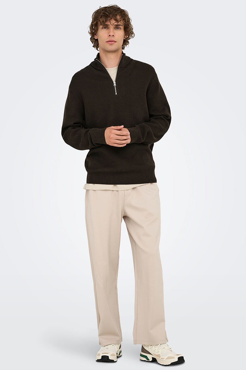 ONLY & SONS Phil Cotton Half Zip Knit Desert Taupe