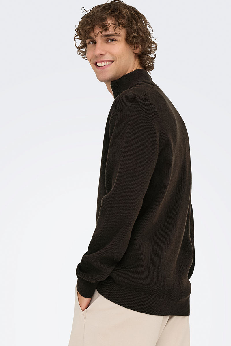 ONLY & SONS Phil Cotton Half Zip Knit Demitasse