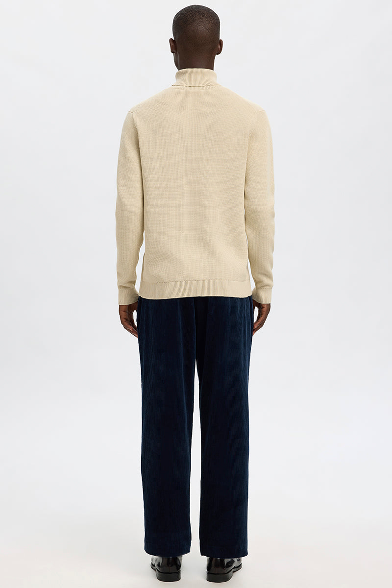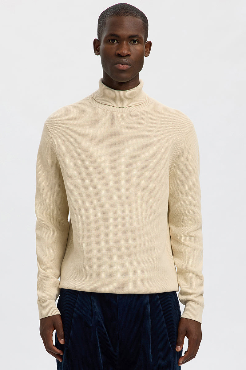 Selected Dane LS Structure Knit Roll Neck Oatmeal