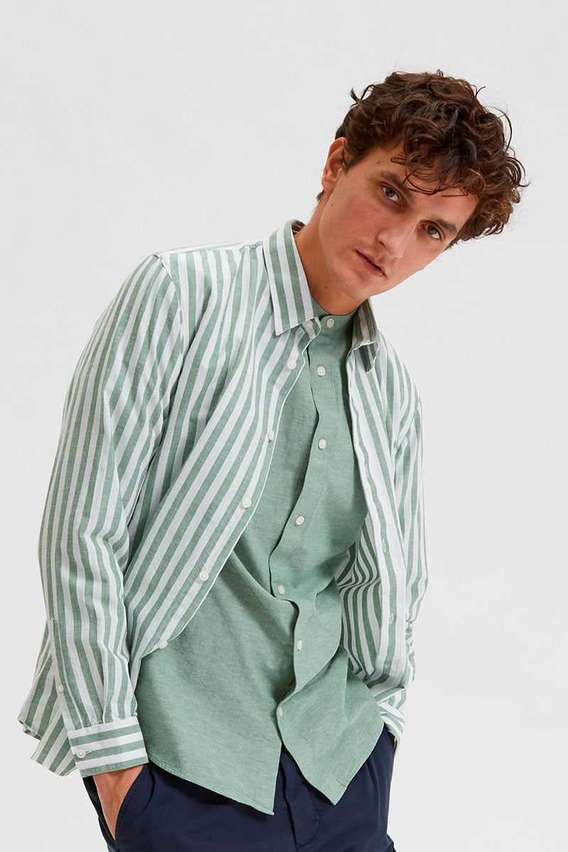 SLHSLIMNEW-LINEN SHIRT LS BAND W Desert Sage