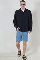 Latham LS Linen Structure Shirt Dark Navy