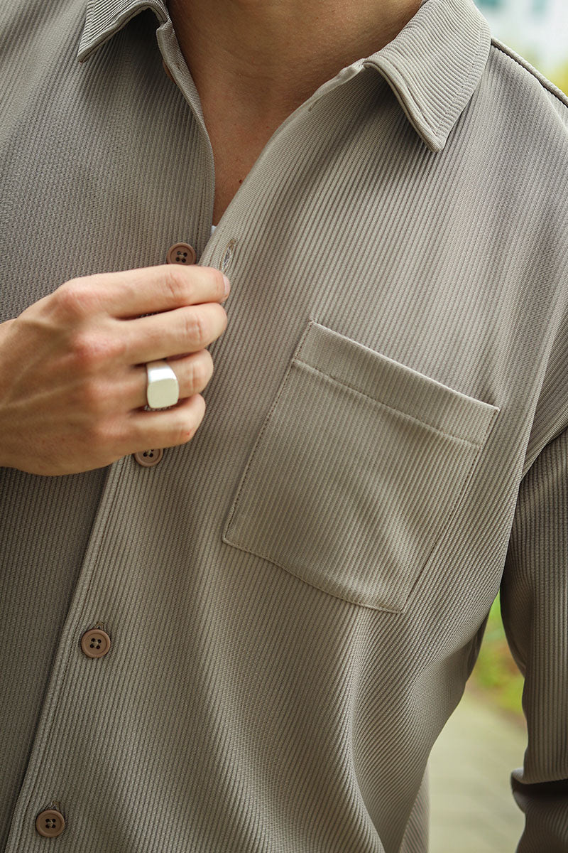 Relax Plisse LS Shirt Greige