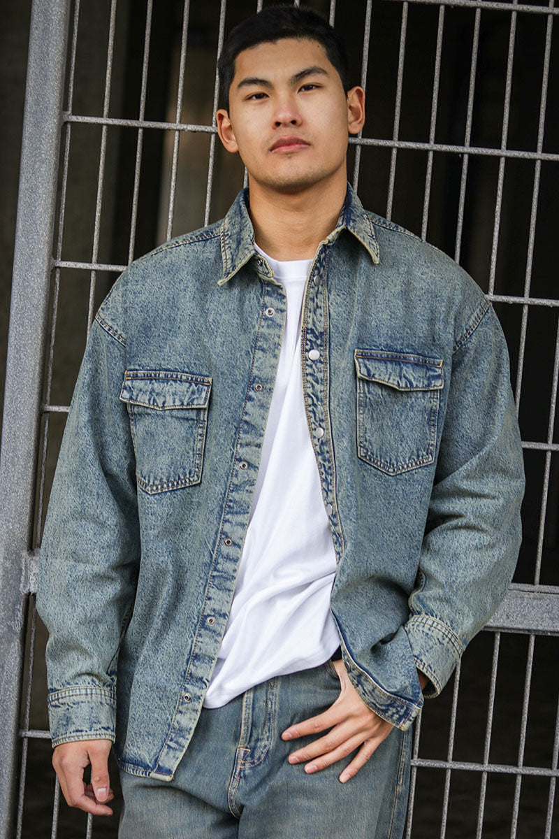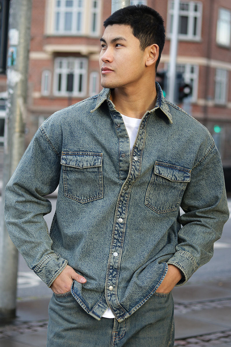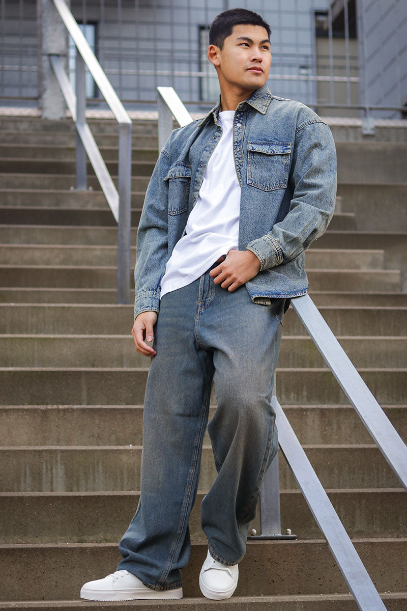 Austin Wide Fit Denim Shirt LS Light Blue Denim