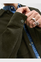 - The overshirt features a classic collar, two front pockets, button closure and cuffs with buttons
