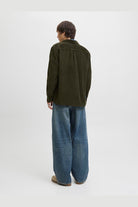 - Overshirt in velvet‑like fabric with thick structure for volume and warmth