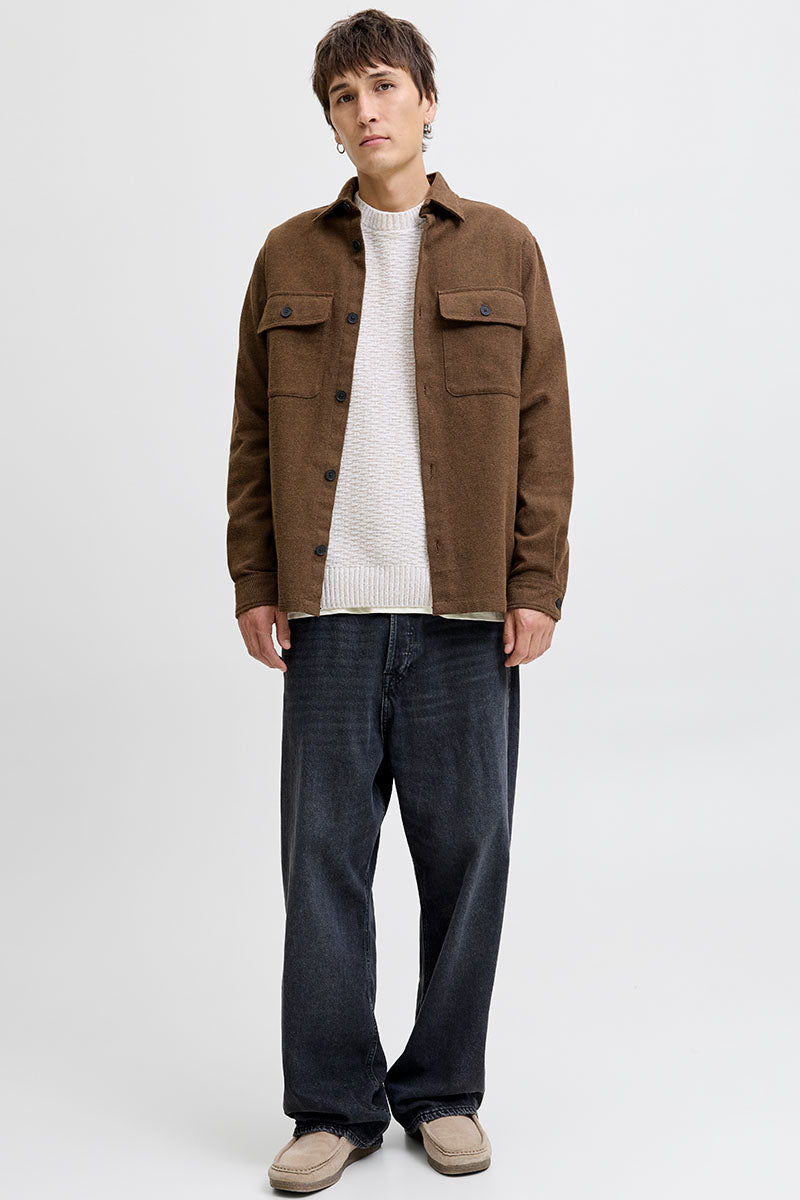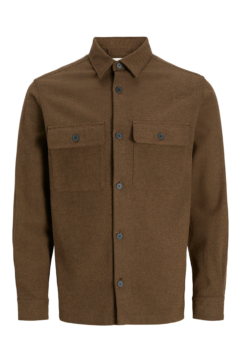 Jack & Jones Rayle Melange Solid LS Overshirt Peat