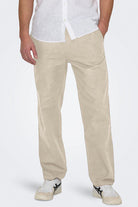 ONLY & SONS Sinus Loose Cotton Linen Pants Silver Lining
