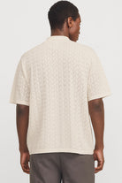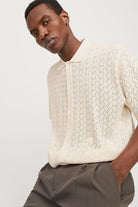 - Features a classic polo collar, buttons, and dropped shoulder seams
