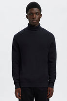 Selected Dane LS Structure Knit Roll Neck Black