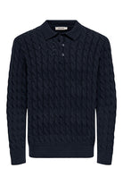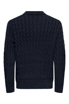 - The sweater features a knitted collar and 3 buttons at the top. It also has ribbing at the hem and sleeves