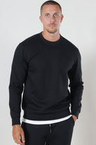 • The sweatshirt has ribbing at the collar, cuffs, and hem.