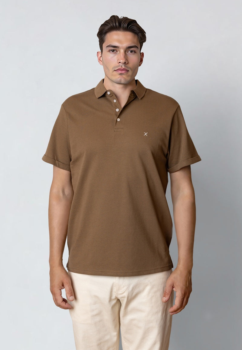 This stretch polo offers a comfortable fit perfect for the spring and summer seasons. Crafted in a blend of cotton, polyester, and elastane, it combines softness with a slight stretch for ease of movement. Its subtle Shitake color adds a refined touch that pairs well with various casual looks.