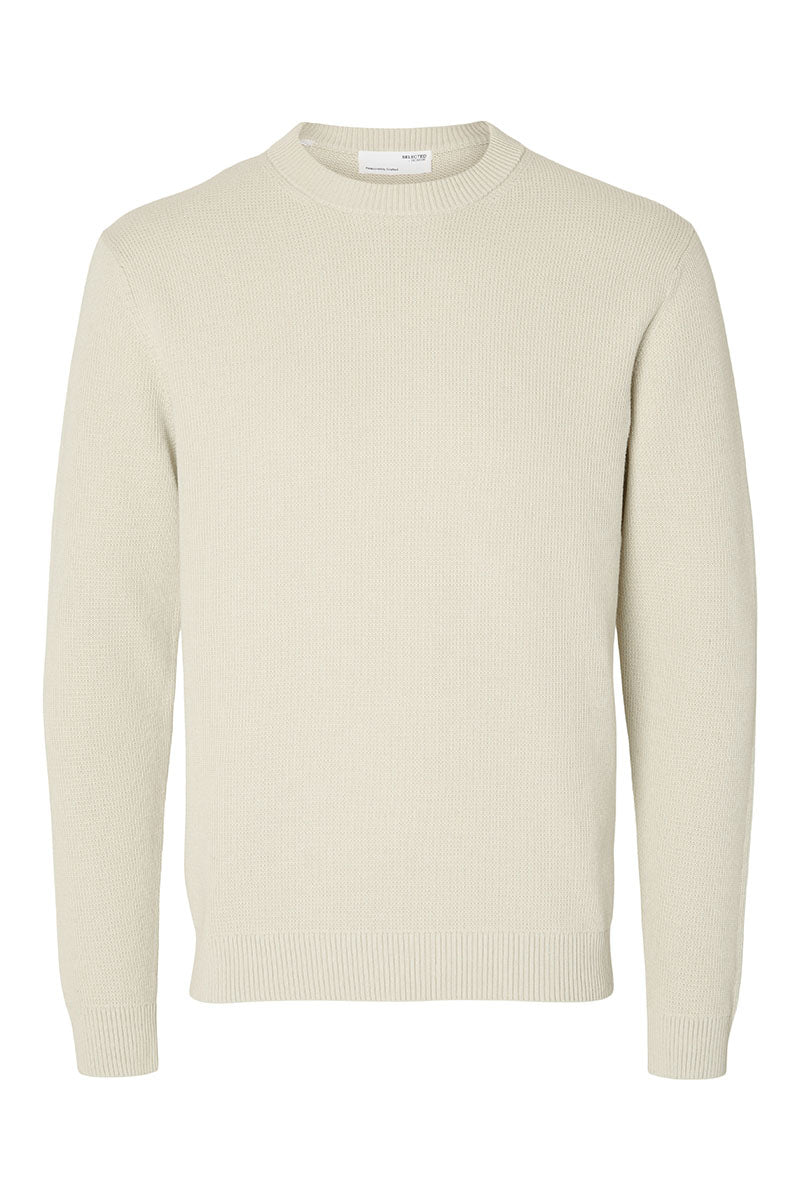 Selected Dane LS Structure Knit Crew Neck Greige