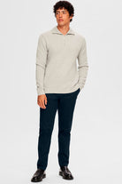 Selected Dane LS Structure Knit Half Zip Light Grey Melange