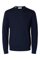 Selected Tray LS Merino Knit Crew Neck Navy Blazer