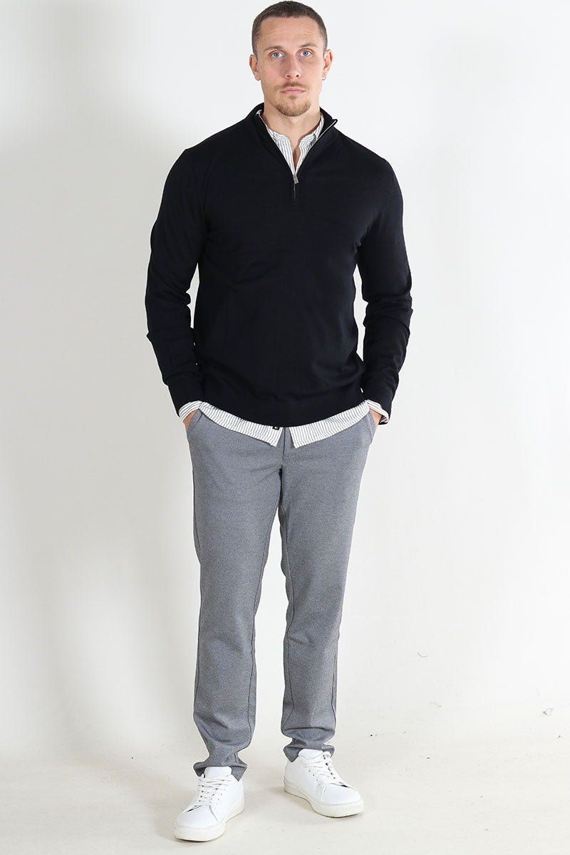 Tray LS Merino Knit Half Zip Black